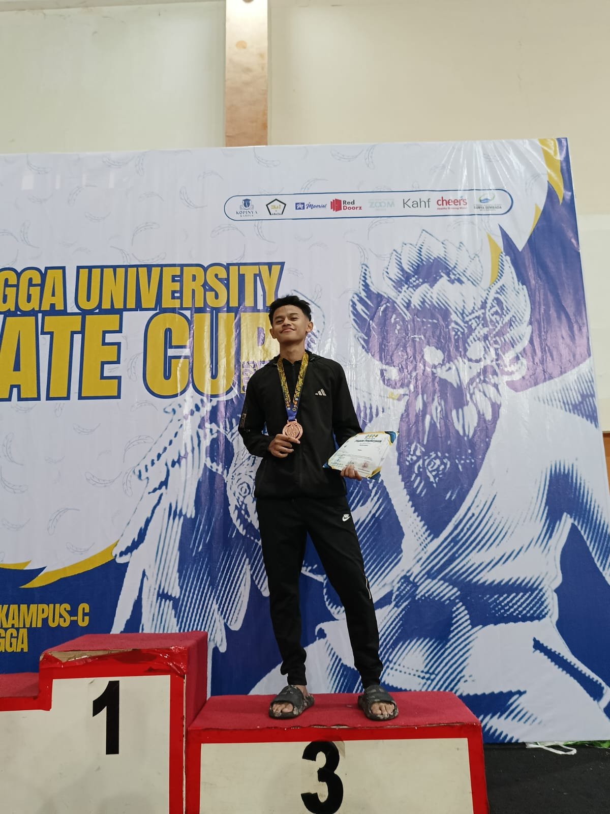 Raffi Akbar: Sukses mengamankan Juara 3 Kata Perorangan Under 21 Putra. Kerapihan jurus dan fokus yang tajam membawa Raffi membawa pulang medali perunggu